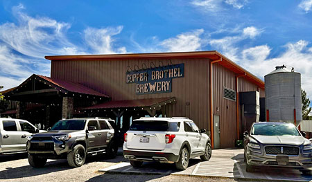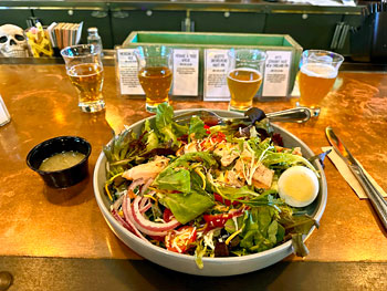 At Bob’s suggestion, we had lunch after our wine tasting at the Copper Brothel Brewpub in the small town of Sonoita a few miles from the Rune tasting room. I had a large and delicious grilled chicken salad, with bacon, hard-boiled egg, tomato, red onion, cucumber, shredded cheese and lemon Dijon vinaigrette. I also got a tasting flight of four beers – Mexican ale, wheat beer, hazy IPA, and New England-style IPA, all good with the last one being my favorite. Bob had fish & chips along with a red Kölsch, and he loved both. I’d definitely recommend Copper Brothel if you’re looking for a place to eat (and maybe have a beer too) in the Sonoita area. After our lunch I headed east to visit the old mining town of Tombstone, where my great-grandfather and his two brothers ran a store during the town’s early 1880s heyday. Although Rune was the only winery I checked out on my road trip, I was very glad that I took the time to stop and taste there – it was a very enjoyable visit!
