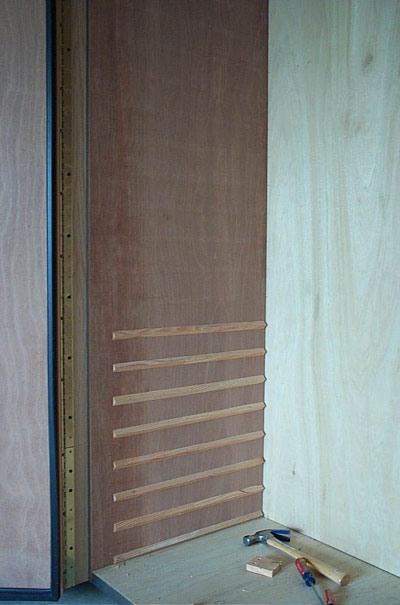 grooved side rails on the cabinet walls.