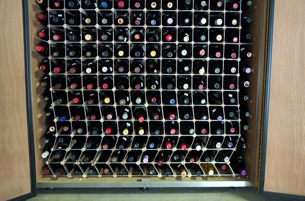 rack. The downward pressure from the weight of the bottles