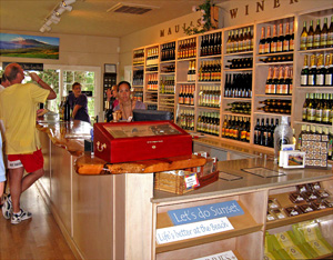 I was able to taste four wines at Tedeschi. My busy server didn’t have a lot of time to answer questions as I tasted, but I was able to learn a bit more about the winery and its wines. There are several other bottlings that I did not taste during my visit. Among these are the “Hula O'Maui” – a sparkling pineapple wine, “Rose Ranch Cuvée” – a sparkling Rosé made from Pinot Noir and Chardonnay, “Plantation Red” – a blend of Syrah and Carnelian entirely from the estate vineyard, and “Framboise” – a dessert wine made from raspberries, cane sugar and grape spirits.Some of the wines are sold only in the tasting room, though the “Maui Blanc” and “Maui Splash!” in particular enjoy wider distribution. All of the wine label artwork is done by Maui artists, andI should note that I did not see any appellations or vintage dates on the labels. Total annual production is around 30,000 cases.