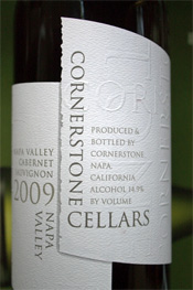 Cornerstone 2009 Cabernet Sauvignon, Napa Valley. Sourced from three vineyards, 95% Cabernet Sauvignon, 5% Merlot. Medium-dark purple, this showed deeper fruit character along with a bigger oak component, chocolate, and spice. Bolder mouthfeel with a grippier tannic finish.