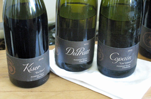 The Baxter label was founded in 2002 by Phil Baxter and his son Phillip. Both studied winemaking (at Cal State Fresno and UC Davis, respectively), and have long backgrounds in the wine business. The first vintage of Baxter wines was from 2003. Phillip has headed up the winemaking for the label since its inception, though both father and son play integral parts in the process. Phillip was on hand for the tasting, and since I had visited the Baxter tasting room in Philo recently I tasted only one wine at this event – the 2014 “Black Label” Pinot Noir. The fruit was sourced from several Anderson Valley vineyards and was a standout, with bright red fruits, spice, hints of flowers, and a saline quality, with fine acidity on the palate – a different and intriguing Pinot.