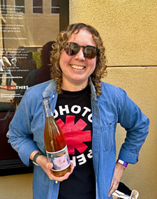 Ully Pòvoa was born in Brazil but grew up in California, and founded her Vai e Vem (“Come and Go” in Portuguese) label in 2021. She makes her wine in Sonoma. My favorite at her table was the skin-fermented 2021 “The End is Infinite” Dornfelder from Mokelumne Glen Vineyard in Lodi. A lighter and brighter rendition of the variety, this had earthy dark berry fruit and spice aromas, with good structure and moderate tannins.