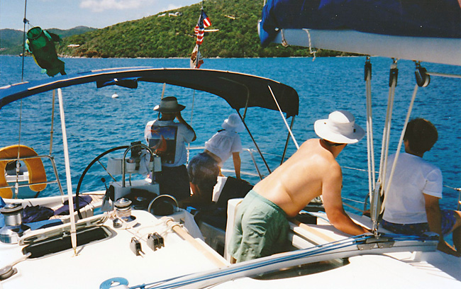 of Ed, Marge, Eric, Debbie, John (our Captain) and Cindy. We charter something along the line of a 45' boat, then provision it, crew it, and sail it