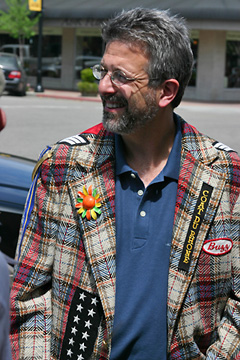 | Top : serious note-taking. Above : '...oh, please, please, please....' Jeff Cohen appears to be pleading to retain his crown...'er, coat. Below Left : a disconsolate Jeff Cohn gets the 'bad news.' Below Right : 'and the winner is....' Susan Neel accepts the trophies for McCrea Cellars. |