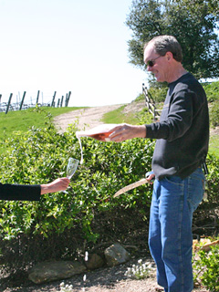 Laetitia's sparkling winemaker, Dave Hickey, sabers a bottle