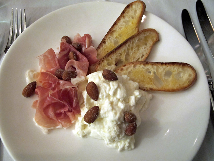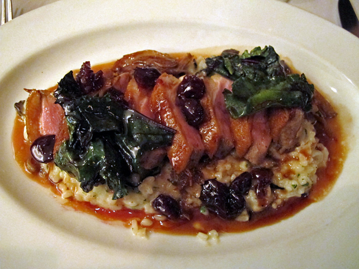Next, we were off to check into our accommodations, the Hotel Carlton in Atascadero. An hour or so to decompress, and we were off to Artisan restaurant in Paso for dinner. We did not bring wine with us, so we were a bit at the mercy of their by-the-glass wine list, which in the end worked out nicely. Of course, 'English Bob Tim' was able to score a few extra tastes of the available wines by pleading ignorance as to the proper food pairings, thus figuratively throwing himself on the mercy of our female server. Quite cheeky, I thought. ;-) I had the burrata, la quercia prosciutto, and smoked almonds - accompanied by a Ranchero Cellars Grenache Blanc; and an Adelaida Pinot to accompany the duck breast with dried cherries on a bed of mushroom risotto - or as Tim enjoyed pointing out, "risotto with mushrooms - there is a difference."