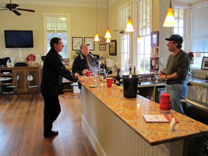 We made a kind of impromptu stop at Justin before heading back to town. I had hoped to show the guys the new winery and tasting room. Unfortunately, it was only open on weekends. Nevertheless, it appeared they had significantly expanded the tasting room at the Just Inn B&B. We wandered in to a light crowd, and sidled up to the bar.