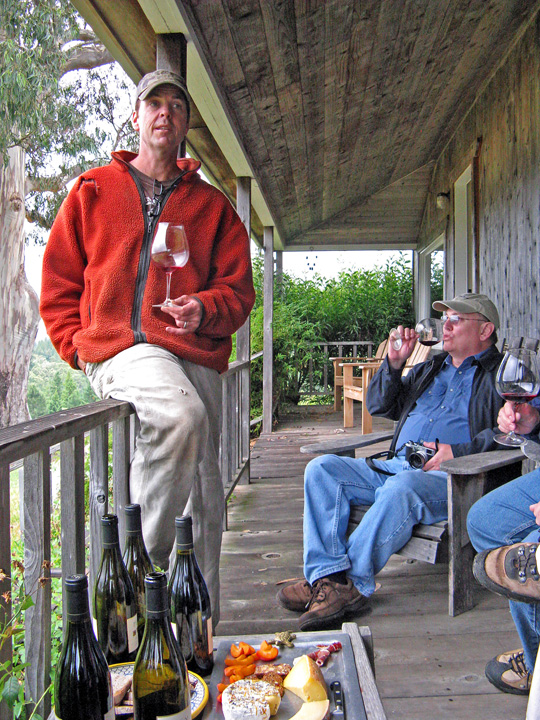 Even though our grape-nutz crew members were coming from different parts of the Bay Area, our group seemed to amazingly arrive simultaneously at the Hirsch winery. Of course, this turned out to be purely accidental. Apparently, Paul Homchick and Eric Lundblad had stopped in Petaluma for croissants - of which, they neglected to bring additional croissants along to share (as in, "did you bring gum for everyone?").