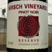Hirsch 2010 Pinot Noir "Reserve," Estate, Sonoma Coast. Loaded with black fruit. A blend of Pommard, Wadenswil, Mount Eden and Swan clones from blocks 8, 7, and 6, along with 5, and 4.More masculine in construct, with very nice acids and a big and juicy finish. Sort of a micro San Andreas in total feel. 100% fruit from older vines.