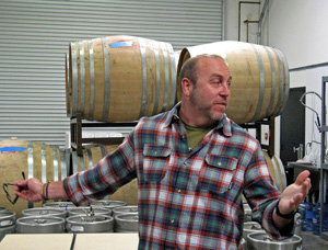 Our group tasted with Carroll in the tasting room while we talked about Red Car’s vineyards and wines, and in addition to the wines already open in the tasting room, Carroll got us a couple of other wines he wanted us to try, along with a couple of barrel samples. At one point he brought out a Chardonnay for us to try between the Pinots and Syrahs – hey, we’re pros, but don’t try that at home! Since Red Car’s move to the Sonoma Coast, I’ve felt that their Syrahs have been especially distinctive, among the best from the region. Carroll feels that regionalism eventually will take hold for California Syrah and that the wines will no longer be lumped into a large, undifferentiated group the way they are too often looked at today. After our tasting, we took a short look at the winery/barrel room behind the tasting room – a pretty basic, utilitarian winery space, nothing fancy at all.